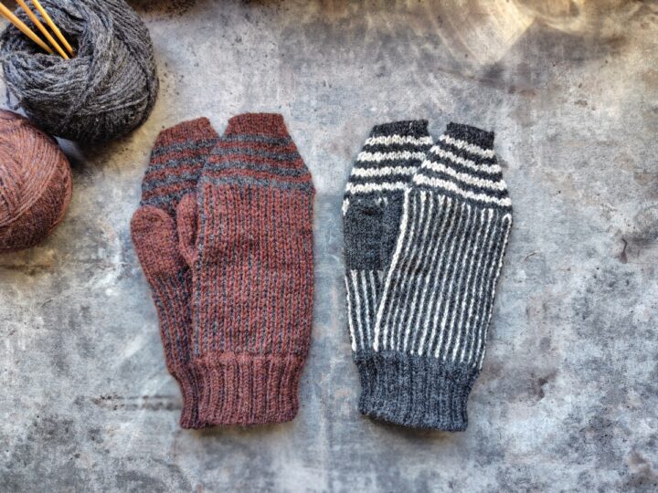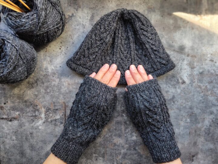 今回は、統一感のあるコーディネートを楽しんでいただけたらと思い、ニット帽の模様の一部をハンドウォーマーやミトンにも取り入れて、セットであたたかになれる作品をメインに製作しました。諸説ありますが、アラン模様はひとつひとつに意味や願い・祈りがあると伝えられています。