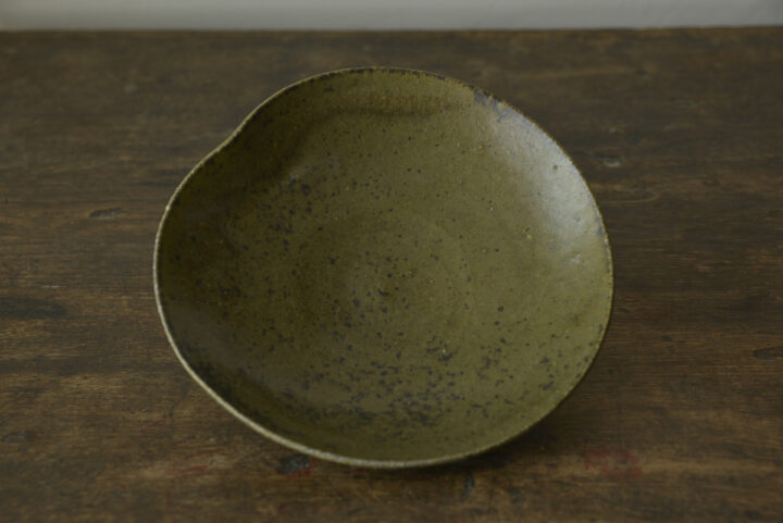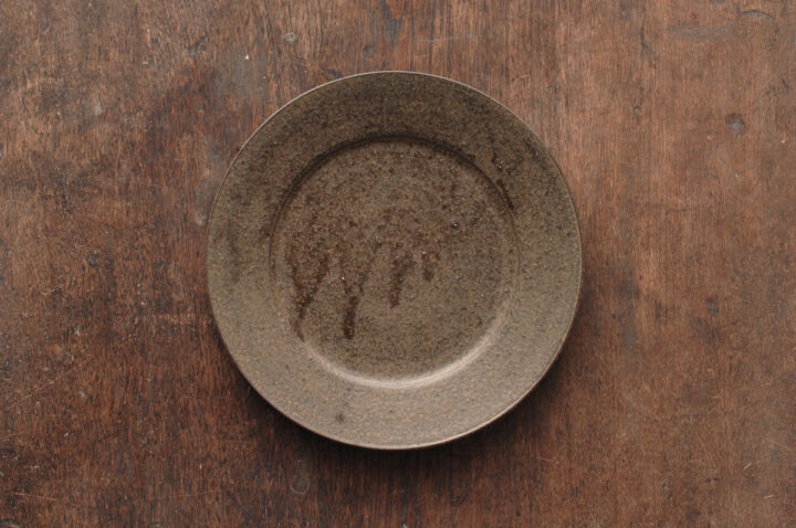 地元の農家さんからいただいた柿灰を釉薬にしたお皿です。