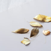 今回は、いつも製作しているジュエリーや雑貨のほか、金属でかたどった落ち葉を並べます。