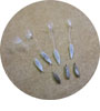 レタスはキク科の植物です。 夏に小さな花が咲き、やがて綿毛が出来ます。 その綿毛の元に、平らな、まるで花びらの様な種がついています。 息を少し吹きかけるだけで舞ってしまいそうな程 繊細な種ですが、早春に種まき後、初夏から夏にかけて多くの葉が収穫できます。